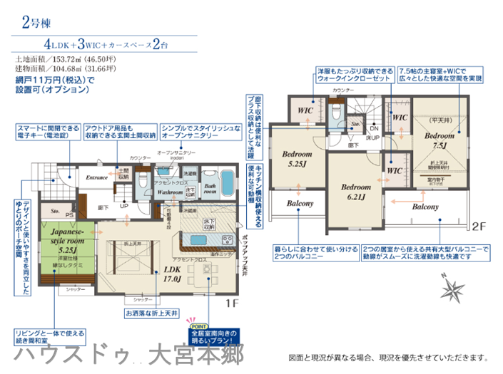| 建物面積 | 104.68㎡ | 駐車場 | あり 普通:2台 |